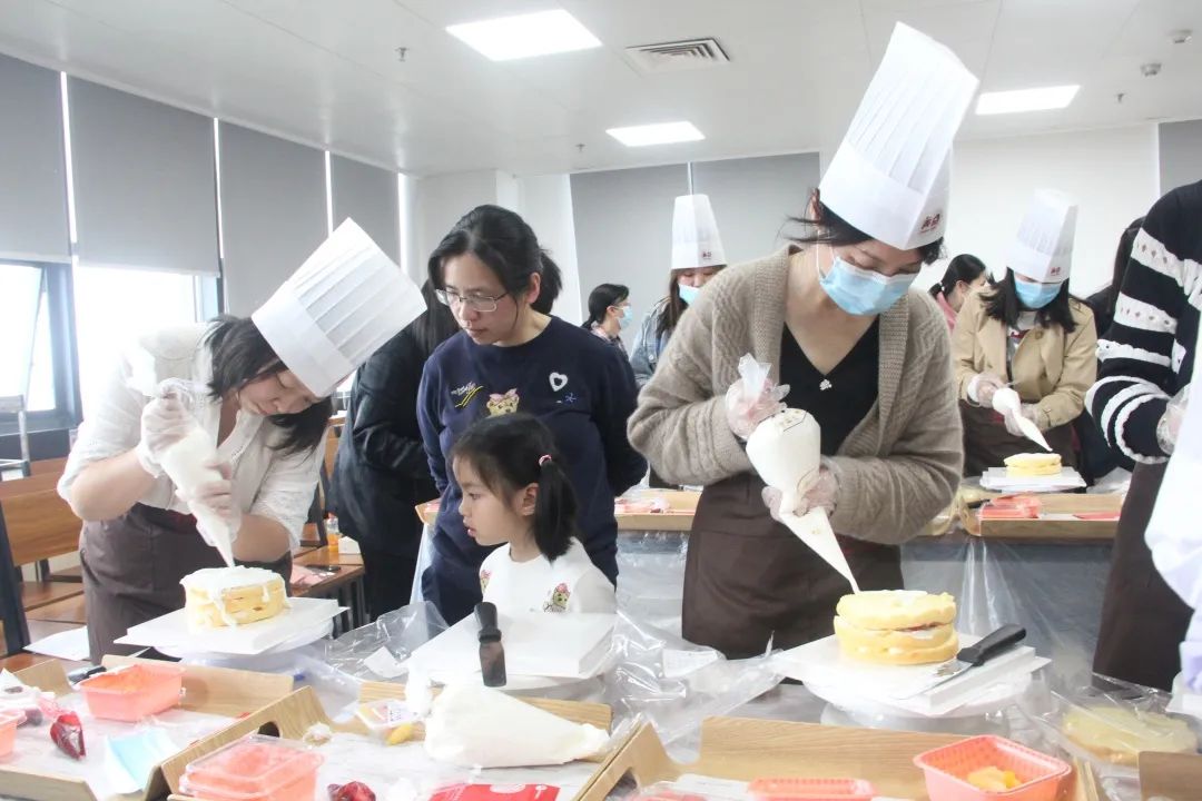 參加活動(dòng)女員工們?cè)诶蠋煹闹笇?dǎo)下,一起學(xué)習(xí)制作蛋糕裱花的方法和技巧,涂抹奶油、裱花裝飾,擺放水果,結(jié)合自己的想法精心裝點(diǎn)自己的創(chuàng)意蛋糕,蛋糕陣陣飄香,歡樂連綿不斷。在一片歡聲笑語中,大家完成了蛋糕的制作,為節(jié)日呈上最甜蜜的祝福。