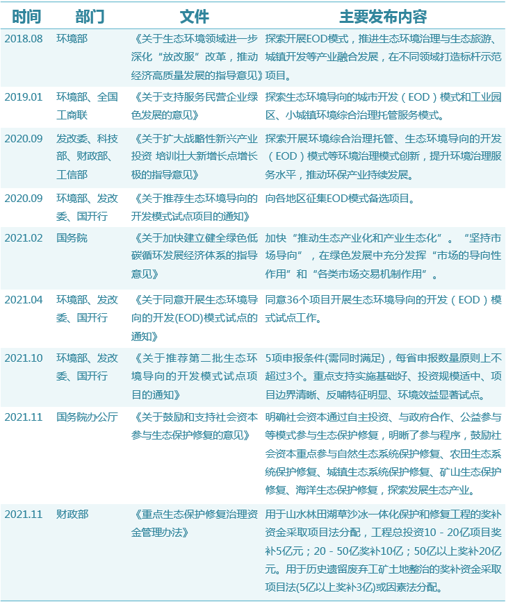 時至今年,多部委陸續(xù)出臺EOD相關政策,中央重視程度逐增。