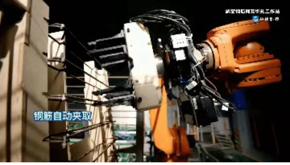 以鋼筋制作安裝、模具安拆、混凝土澆筑、鋼構(gòu)件下料焊接等工廠生產(chǎn)關(guān)鍵工藝環(huán)節(jié)為重點(diǎn),推進(jìn)工藝流程數(shù)字化和建筑機(jī)器人應(yīng)用;應(yīng)用智能鋼筋綁扎機(jī)器人,實(shí)現(xiàn)鋼筋自動(dòng)夾取與結(jié)構(gòu)搭建、鋼筋視覺(jué)識(shí)別追蹤與定位、鋼筋節(jié)點(diǎn)自動(dòng)化綁扎等功能;應(yīng)用模具安拆機(jī)器人,根據(jù)自動(dòng)解析的構(gòu)件信息,實(shí)現(xiàn)邊模識(shí)別、輸送、噴油、分類入庫(kù)以及劃線和布模等全過(guò)程自動(dòng)化生產(chǎn)。