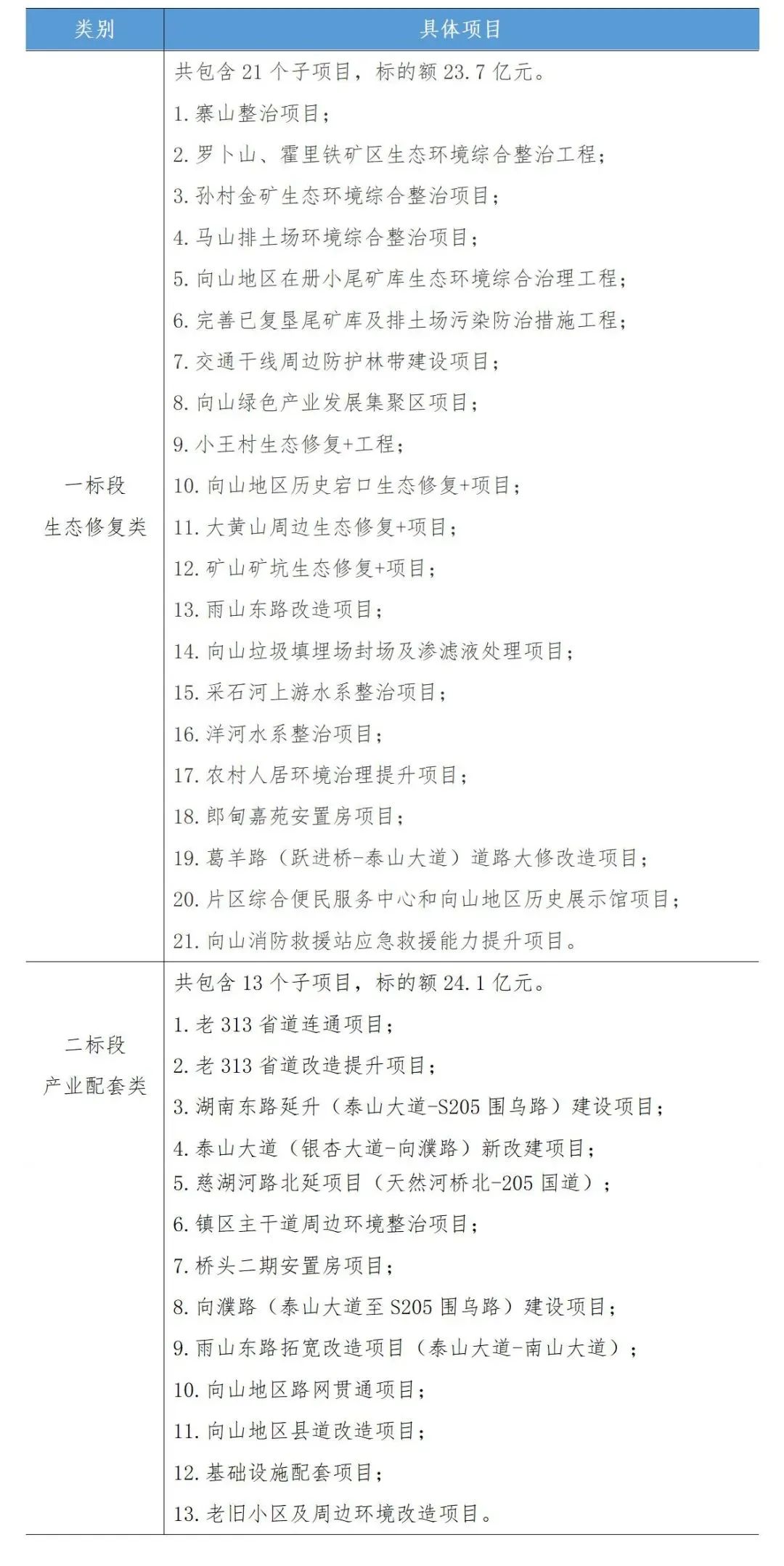 馬鞍山市向山地區(qū)生態(tài)環(huán)境導(dǎo)向的開發(fā)項目由馬鞍山市人民政府授權(quán)馬鞍山市雨山區(qū)人民政府為本項目實施機(jī)構(gòu),項目采取兩階段招標(biāo)方式操作,項目第一階段由雨山區(qū)人民政府通過競爭性程序選擇馬鞍山市兩山綠色生態(tài)環(huán)境建設(shè)有限公司作為本項目的特許經(jīng)營者,負(fù)責(zé)向山EOD項目的投融資、建設(shè)和運(yùn)營。項目第二階段由特許經(jīng)營者作為招標(biāo)人以EPC+產(chǎn)業(yè)導(dǎo)入方式確定項目的總承包單位。其中,一標(biāo)段中標(biāo)人為:中化學(xué)建設(shè)投資集團(tuán)有限公司聯(lián)合體;二標(biāo)段中標(biāo)人為:中鐵市政環(huán)境建設(shè)有限公司聯(lián)合體。