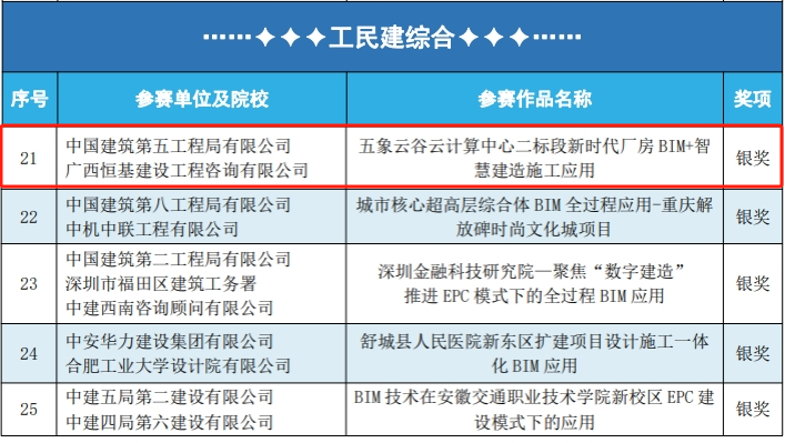近日,由工業(yè)和信息化部人才交流中心主辦的2023第六屆“優(yōu)路杯”全國BIM技術(shù)大賽公布獲獎名單,恒基咨詢報送的作品《五象云谷云計算中心二標段新時代廠房BIM+智慧建造施工應(yīng)用》榮獲大賽銀獎。