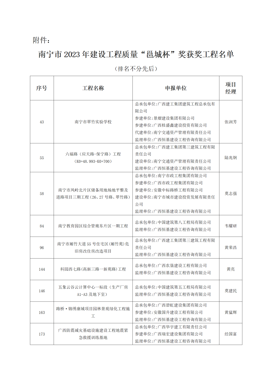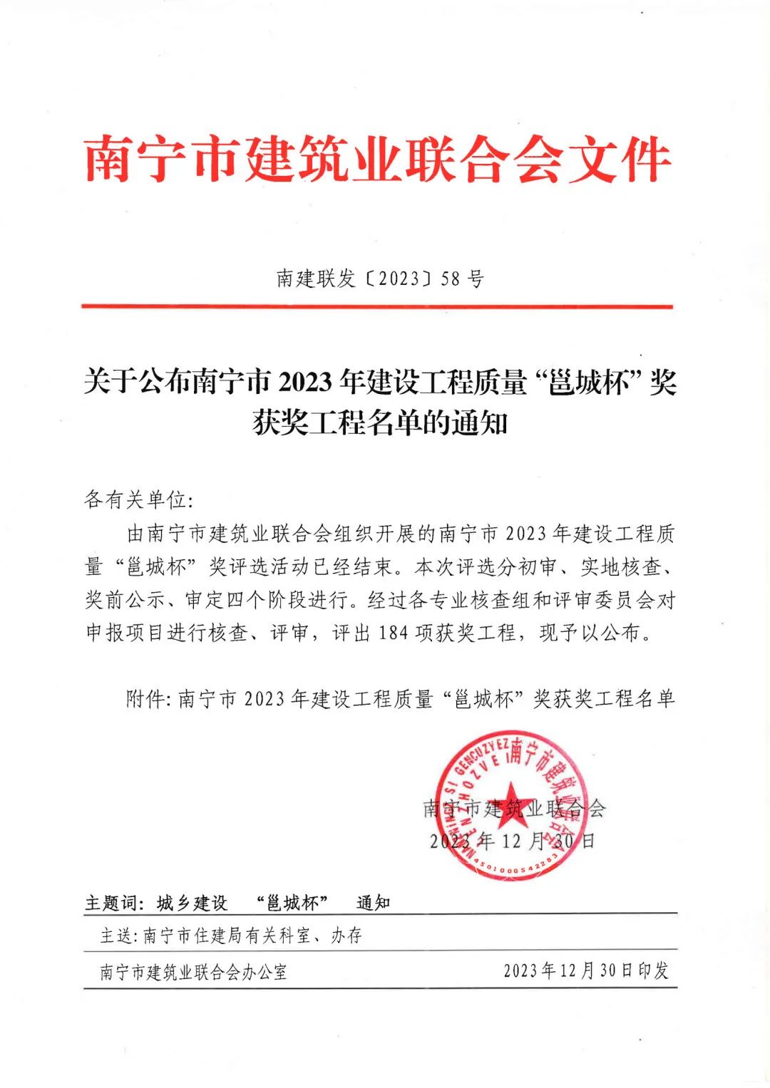 近日,南寧市建筑業(yè)聯(lián)合會公布了南寧市2023年建設(shè)工程質(zhì)量“邕城杯”獎獲獎工程名單。經(jīng)初審、實(shí)地核查、獎前公示、審定等4個階段,恒基咨詢監(jiān)理的“南寧市翠竹實(shí)驗學(xué)?!钡?個項目,成功斬獲該獎項,充分展現(xiàn)了公司的服務(wù)質(zhì)量和綜合實(shí)力。