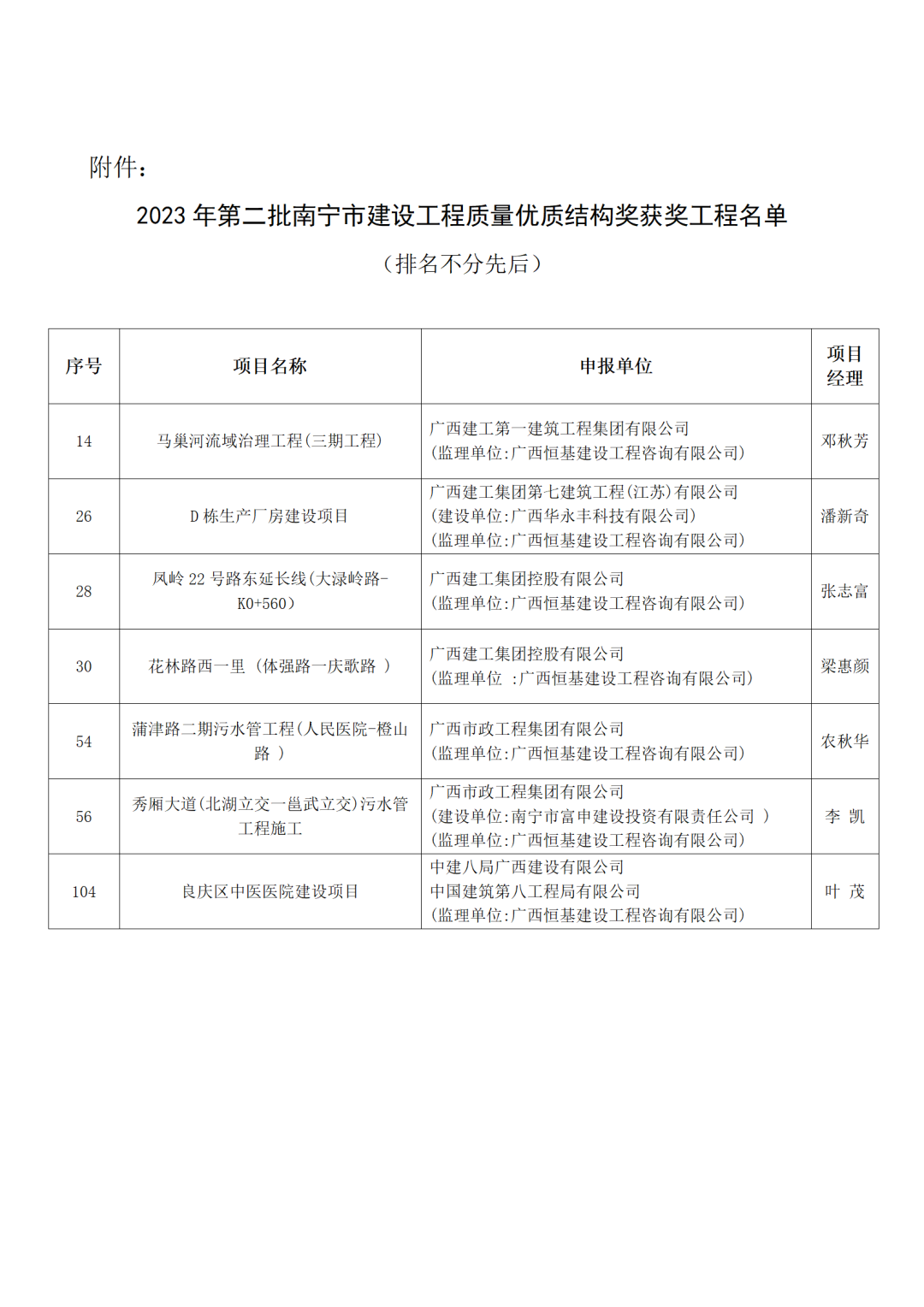 再添7項(xiàng)南寧市建設(shè)工程質(zhì)量?jī)?yōu)質(zhì)結(jié)構(gòu)獎(jiǎng)!