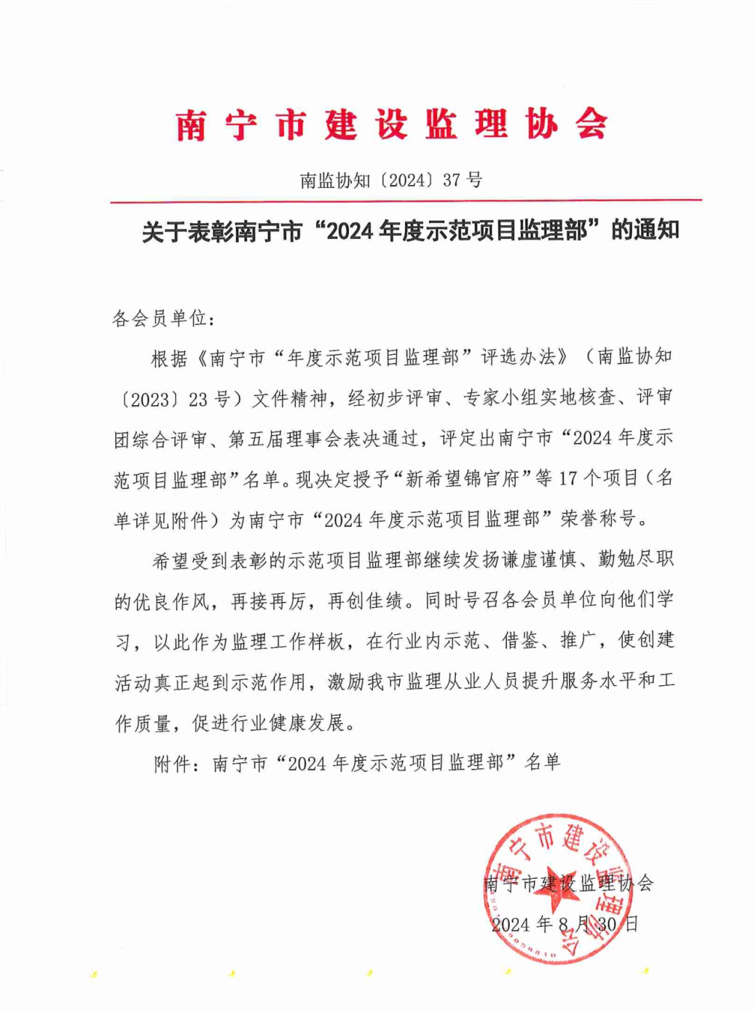 8月30日,南寧市建設(shè)監(jiān)理協(xié)會(huì)公布了“2024年度示范項(xiàng)目監(jiān)理部”評(píng)選結(jié)果,恒基咨詢(xún)監(jiān)理的南寧市友愛(ài)南路13號(hào)小區(qū)危舊房改住房改造項(xiàng)目脫穎而出,成功入選。