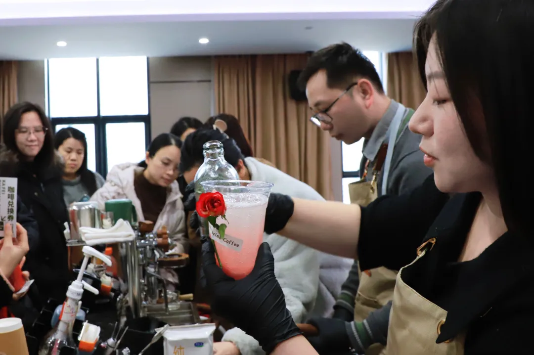 隨后,DIY制作環(huán)節(jié)將活動(dòng)推向高潮。女職工們?cè)诳Х葞煹闹笇?dǎo)下,親自上手研磨咖啡豆、沖泡咖啡、調(diào)氣泡水。雖然手法生疏,但那份專注與熱情卻感染了每一個(gè)人。在輕松愉快的氛圍中,一杯杯獨(dú)具匠心的咖啡、氣泡水作品應(yīng)運(yùn)而生,每一杯都承載著女職工們的創(chuàng)意與祝福。