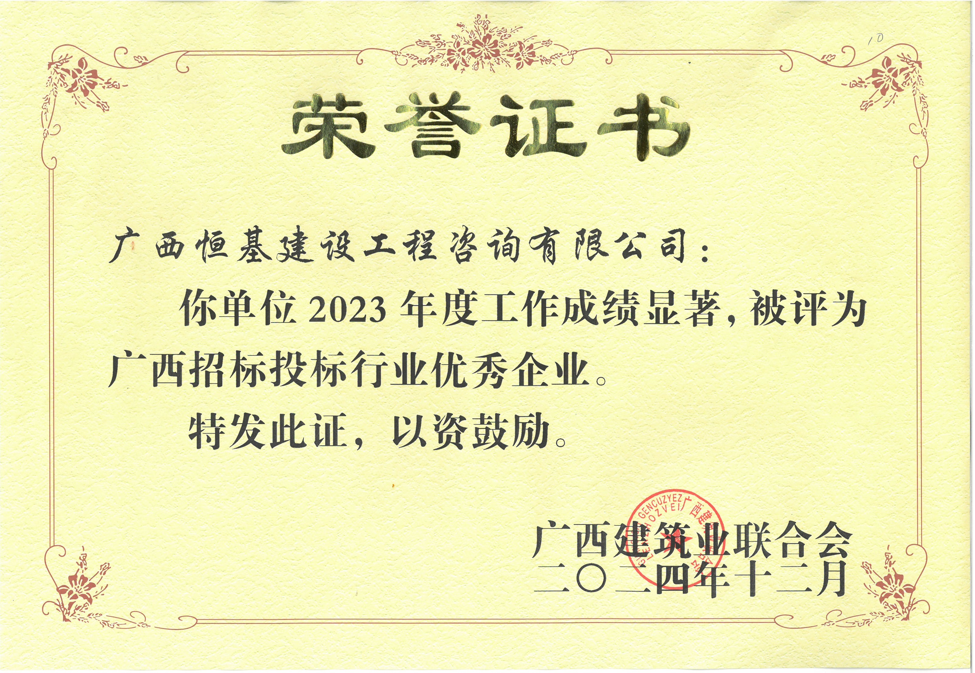 2023年度廣西招標(biāo)投標(biāo)行業(yè)優(yōu)秀企業(yè)