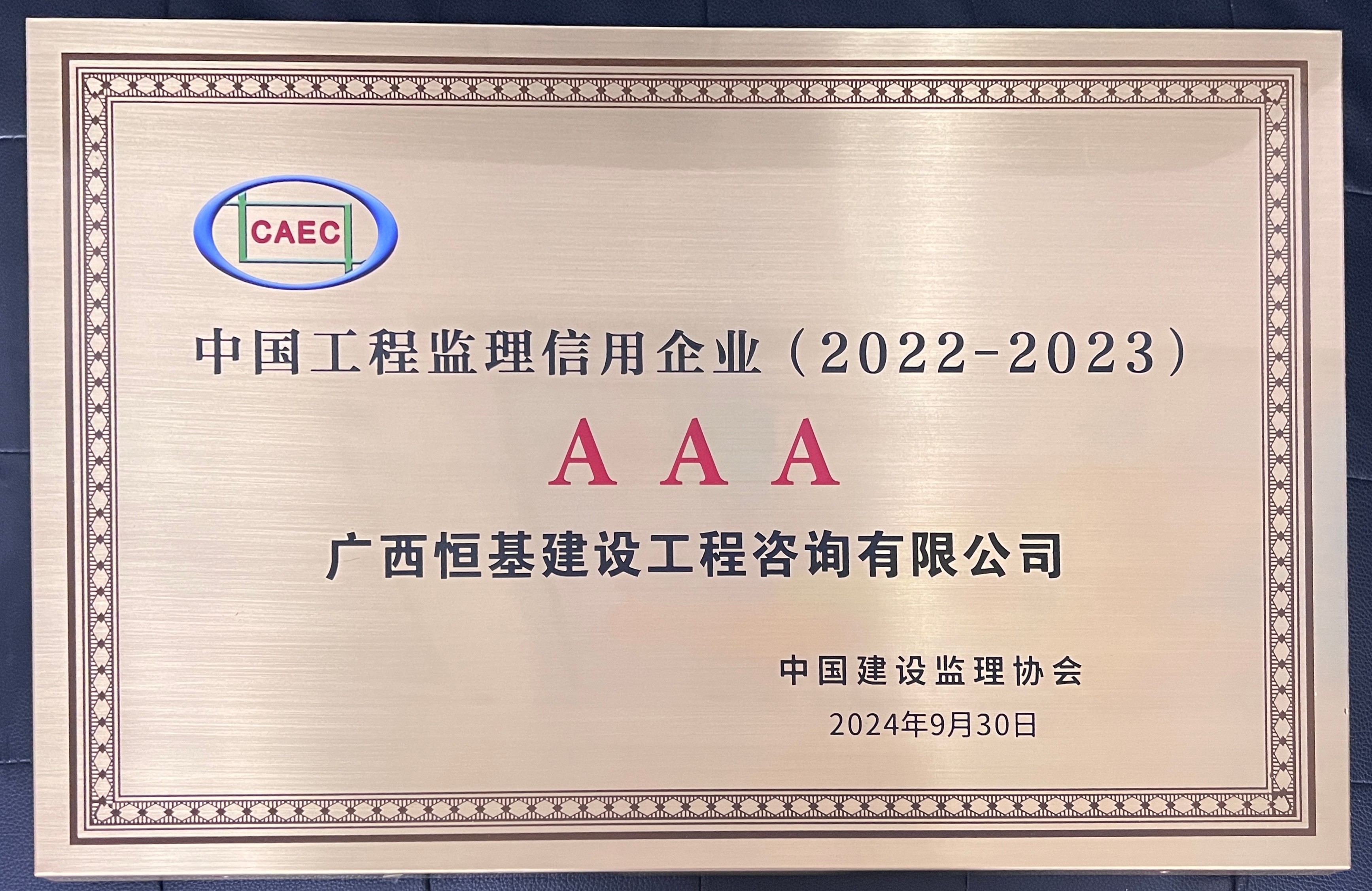 中國(guó)工程監(jiān)理企業(yè)信用評(píng)價(jià)AAA級(jí)(2022-2023)