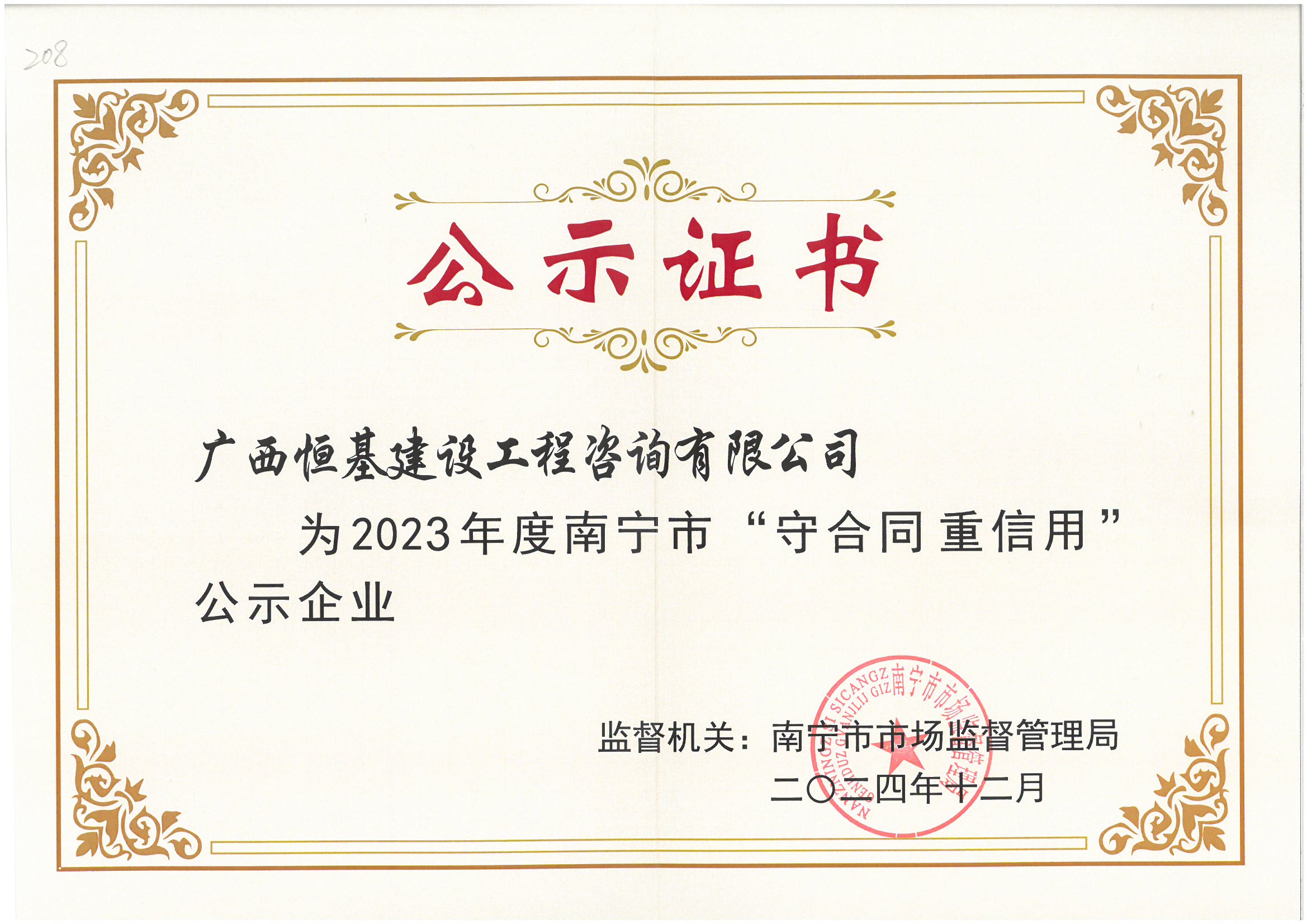 2023年度廣西先進(jìn)工程監(jiān)理企業(yè)
