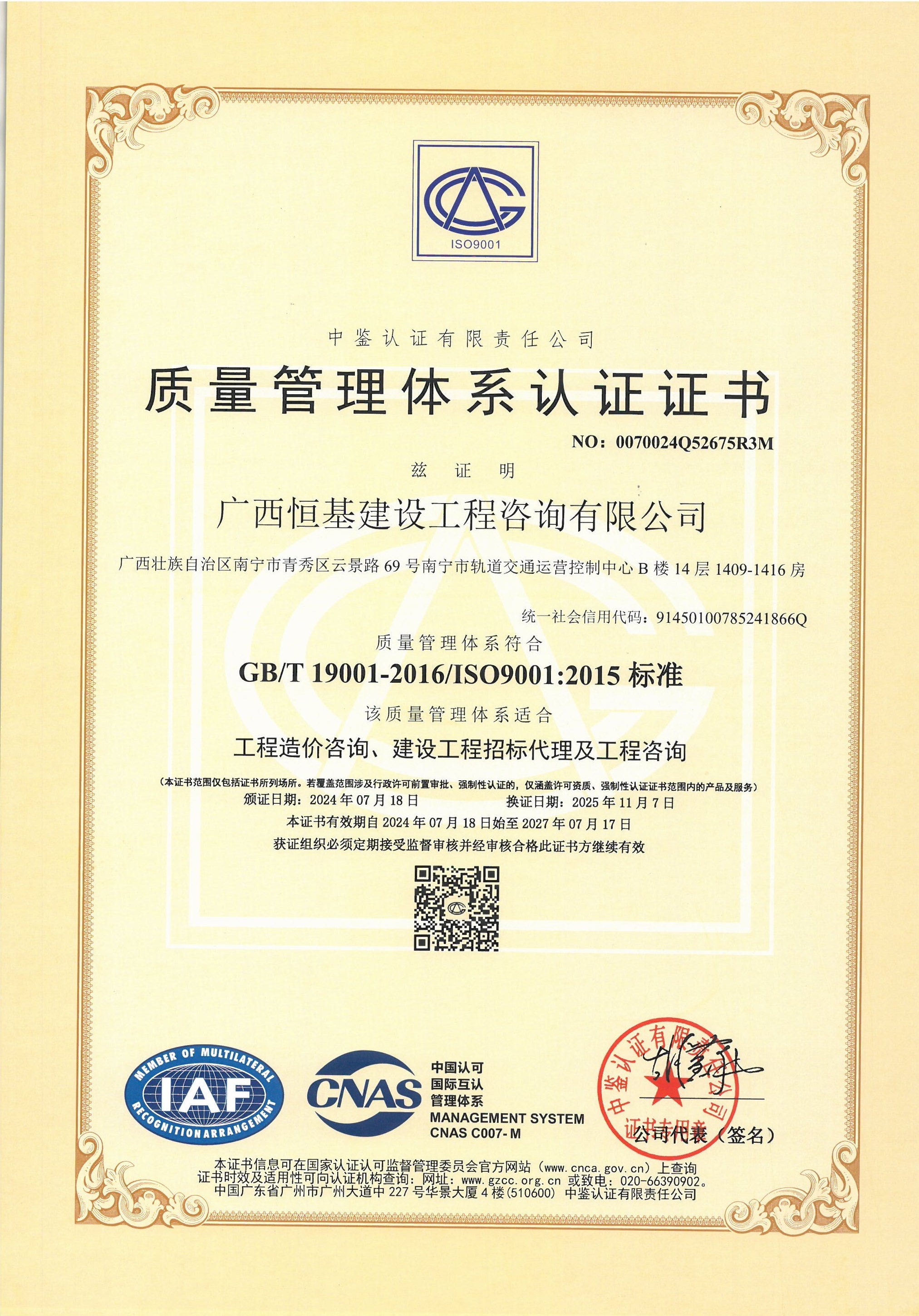 質(zhì)量管理體系認(rèn)證證書(shū)