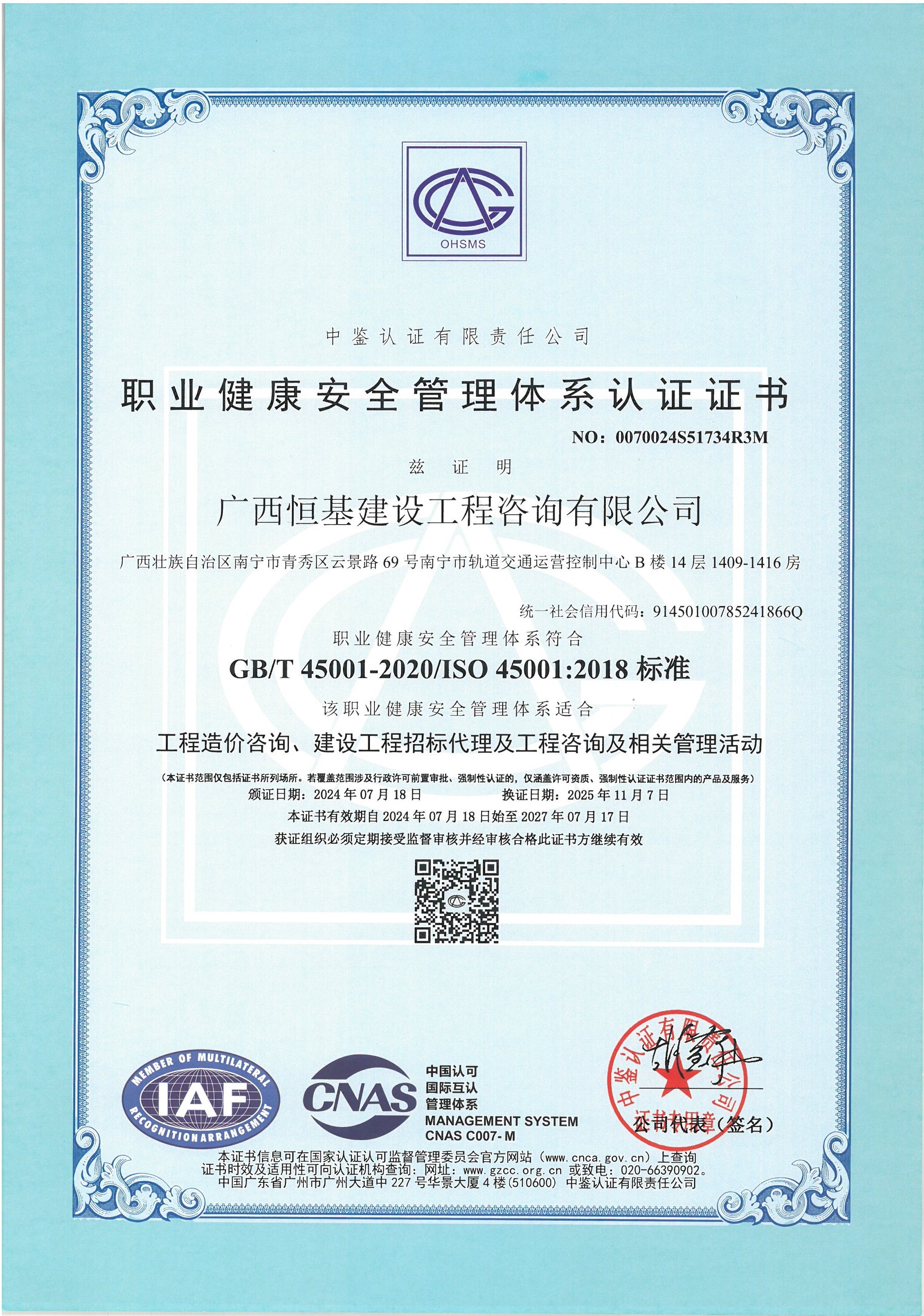 職業(yè)健康安全管理體系認(rèn)證證書(shū)