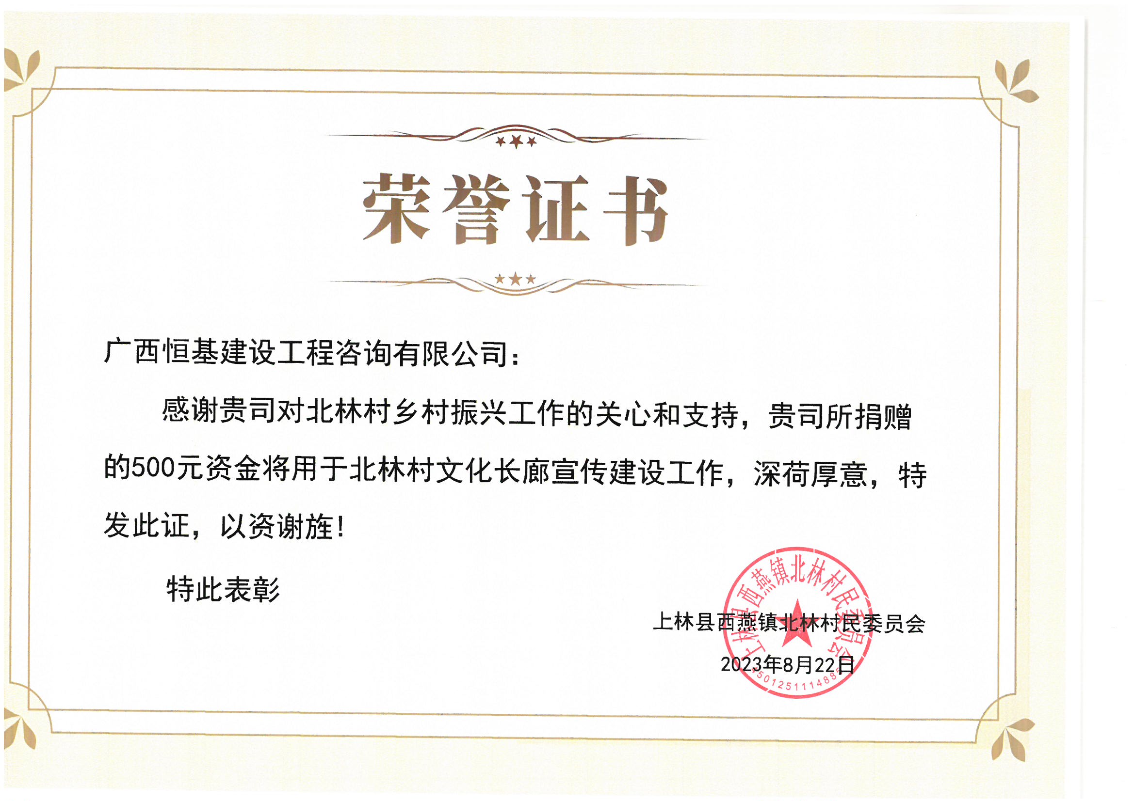 助力鄉(xiāng)村振興“北林村”捐贈-榮譽證書