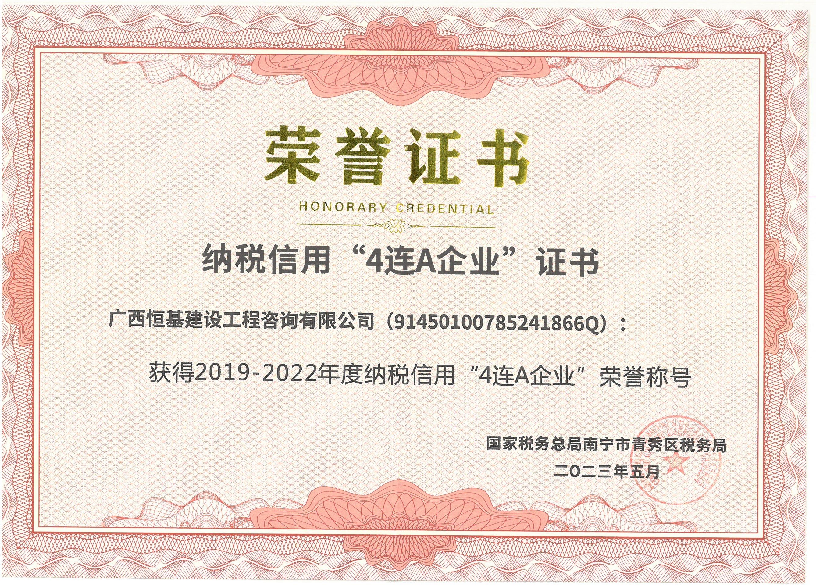 "2019-2022年度納稅信用“4連A企業(yè)”榮譽稱號 "