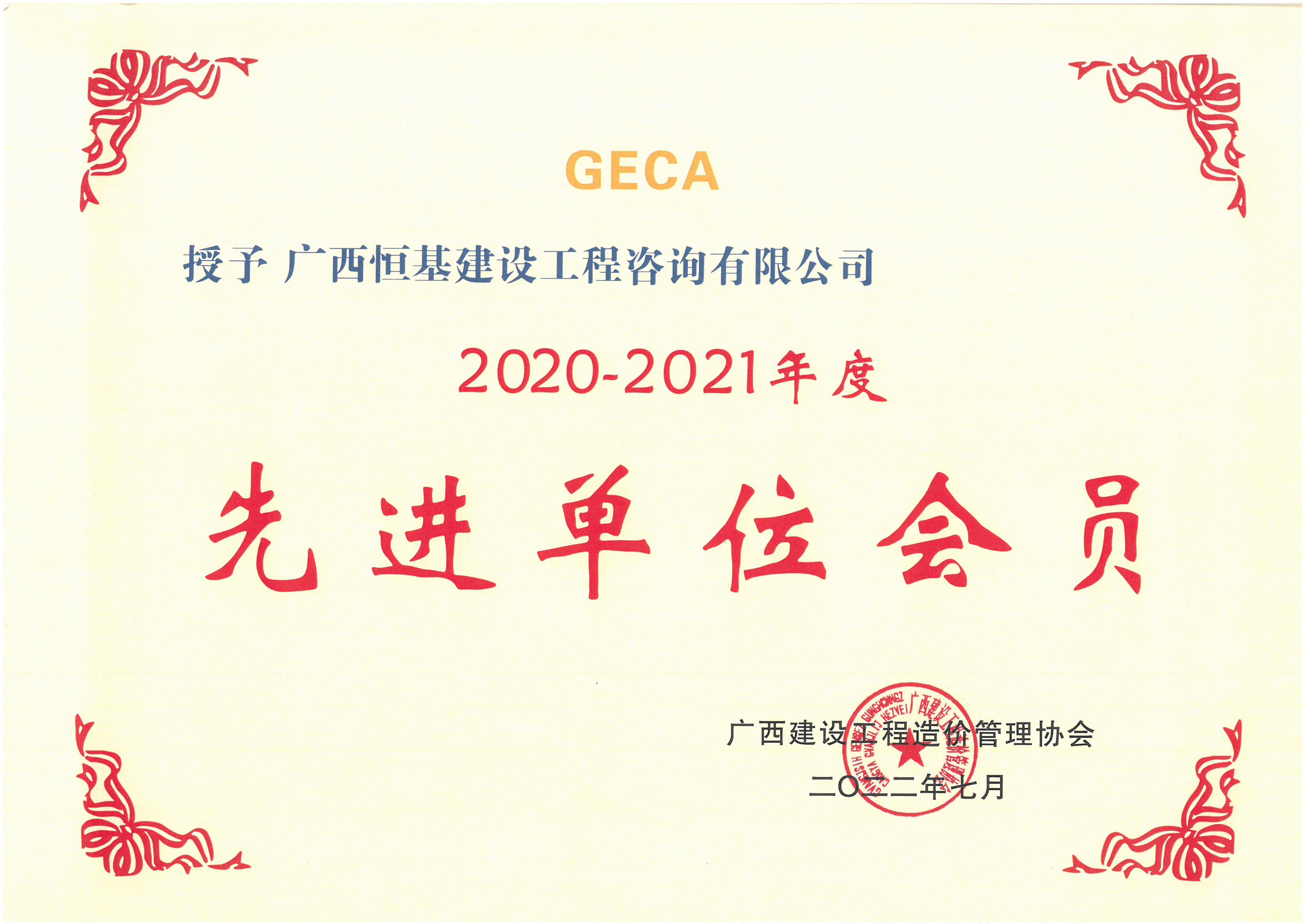 廣西建設(shè)工程造價管理協(xié)會2020-2021年度先進(jìn)單位會員