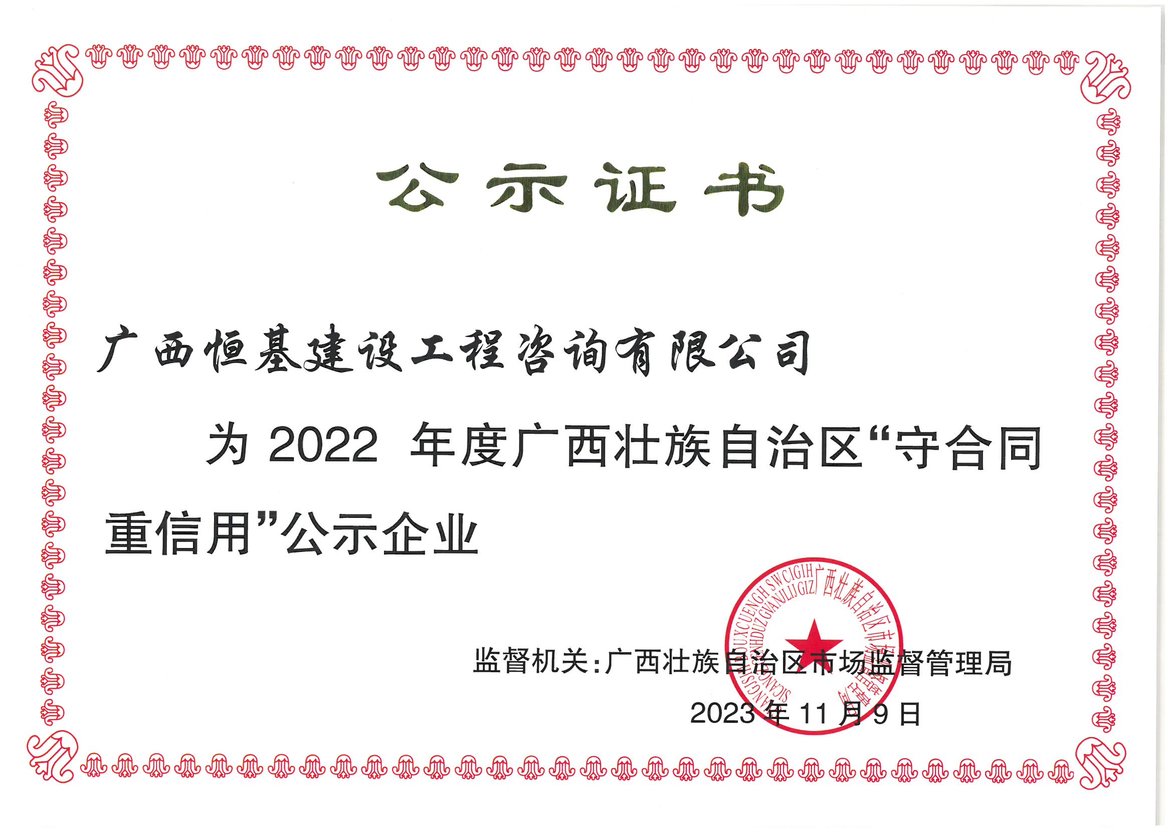 2022年度廣西壯族自治區(qū)“守合同重信用”公示企業(yè)