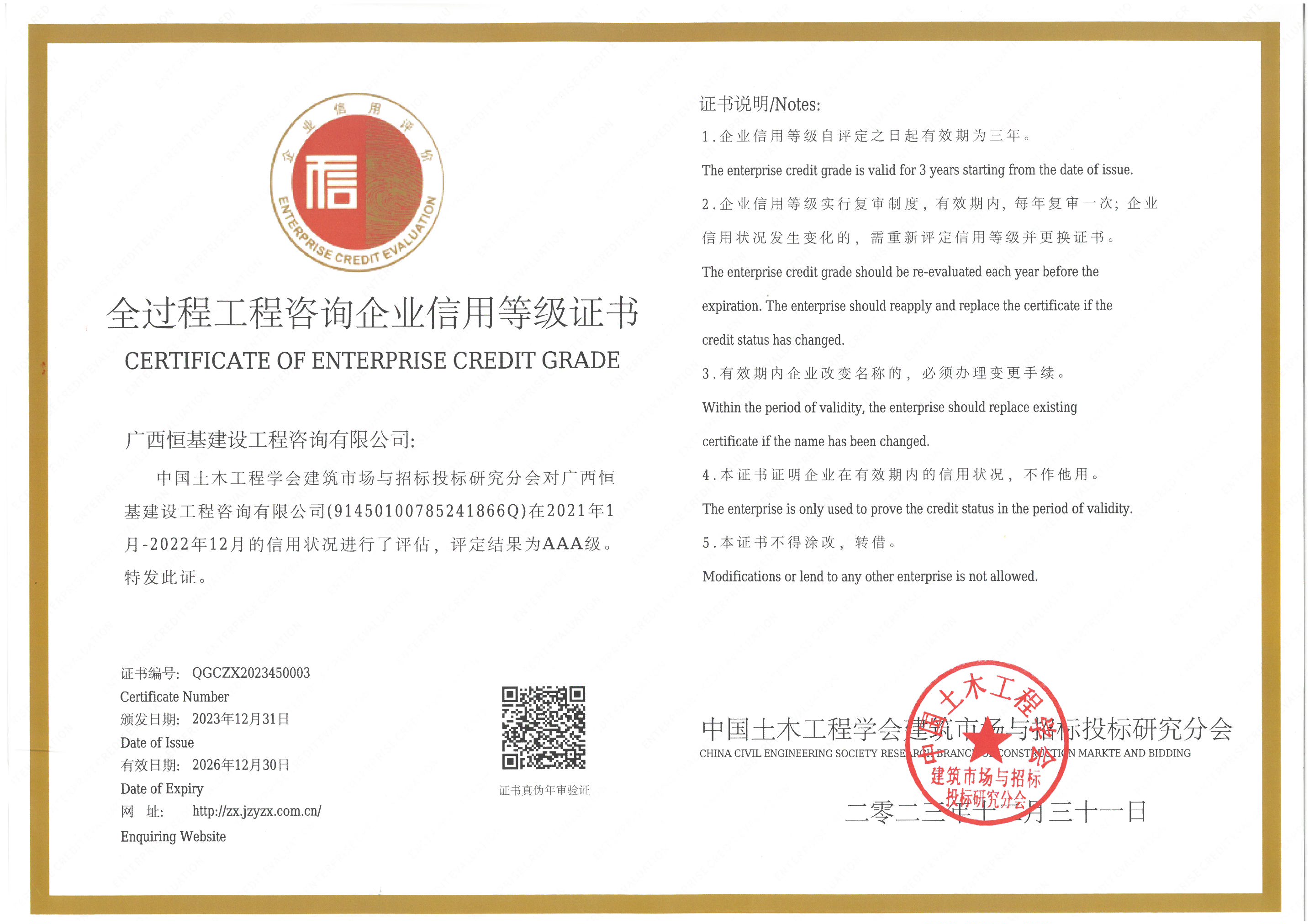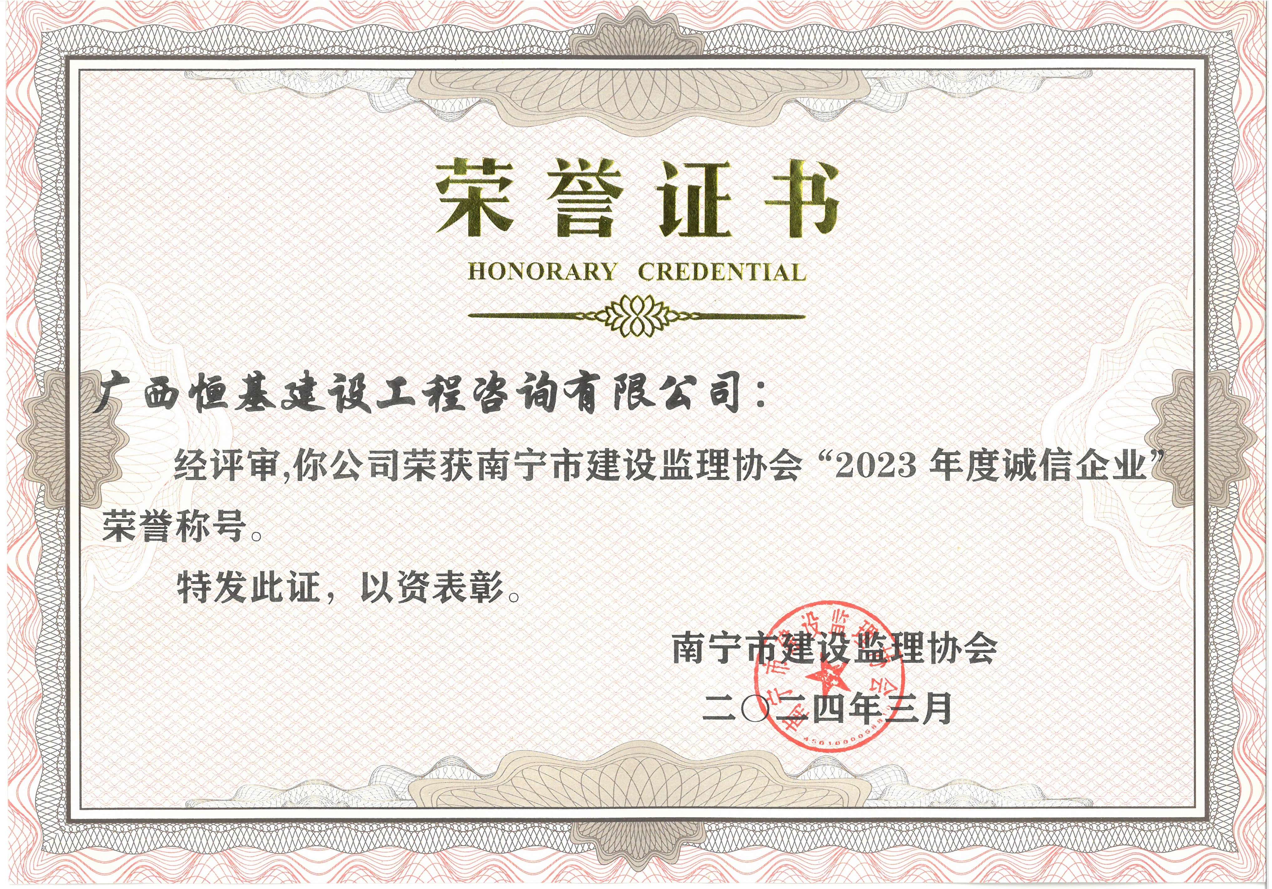 南寧市建設(shè)監(jiān)理協(xié)會2023年度誠信企業(yè)