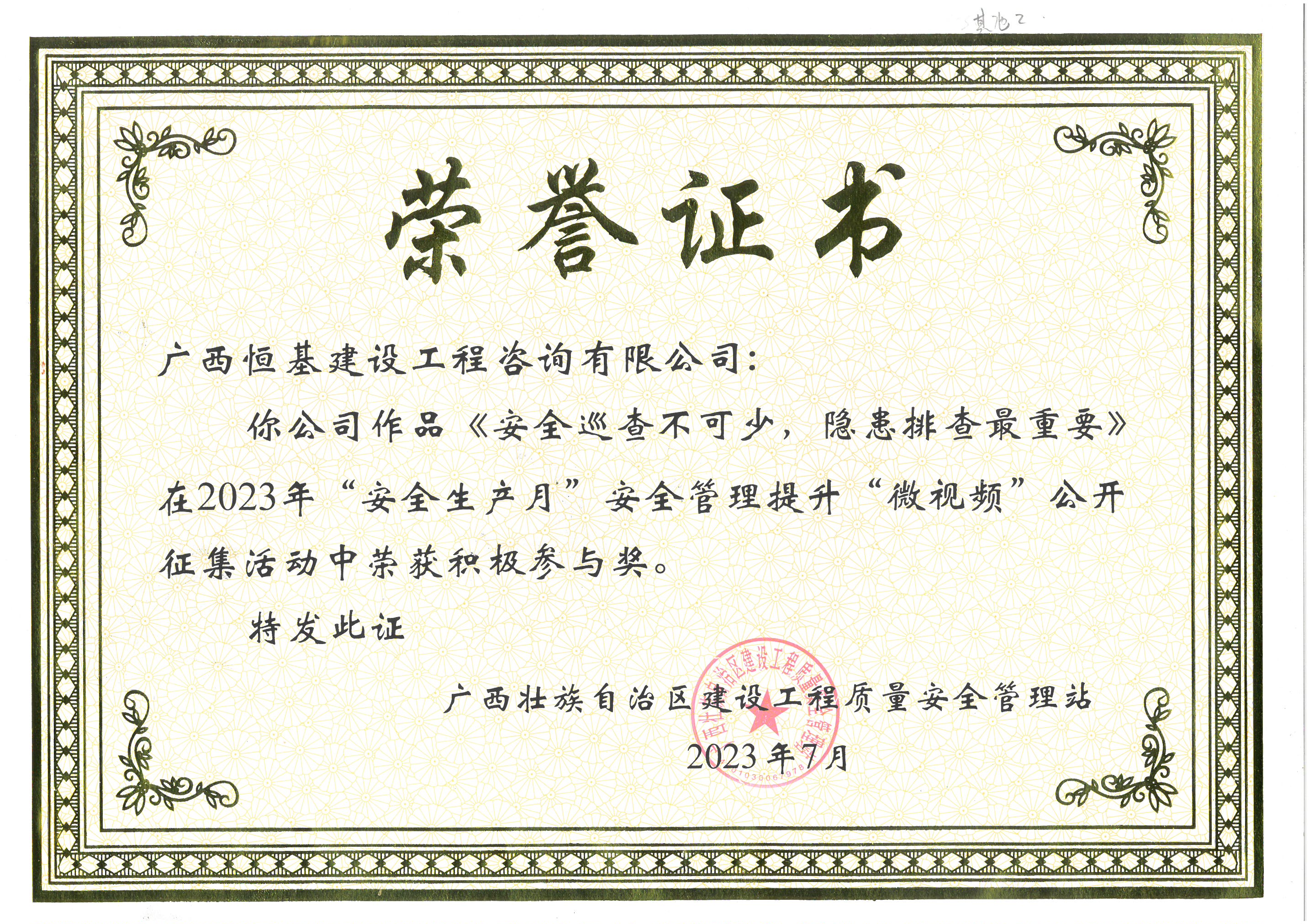 《安全巡查不可少,隱患排查最重要》獲2023年“安全生產(chǎn)月”安全管理提升“微視頻”公開征集活動積極參與獎